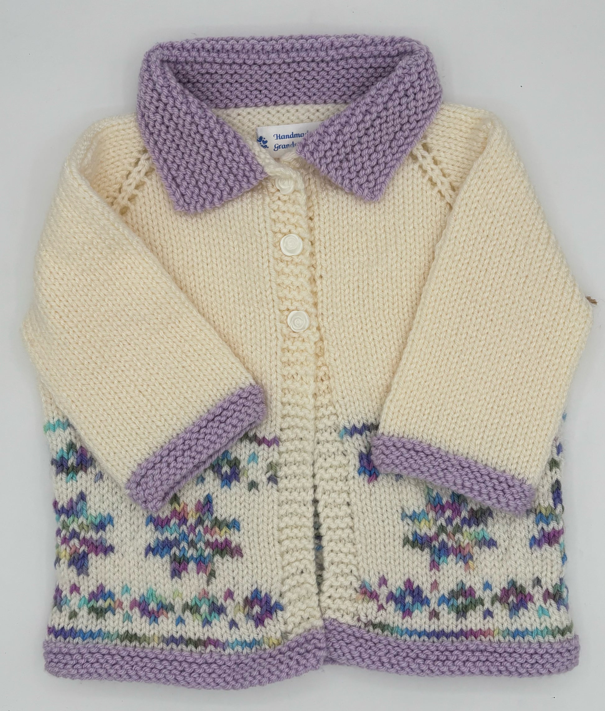 12-18 M Cream and Lavender Snowflake Knit Coat