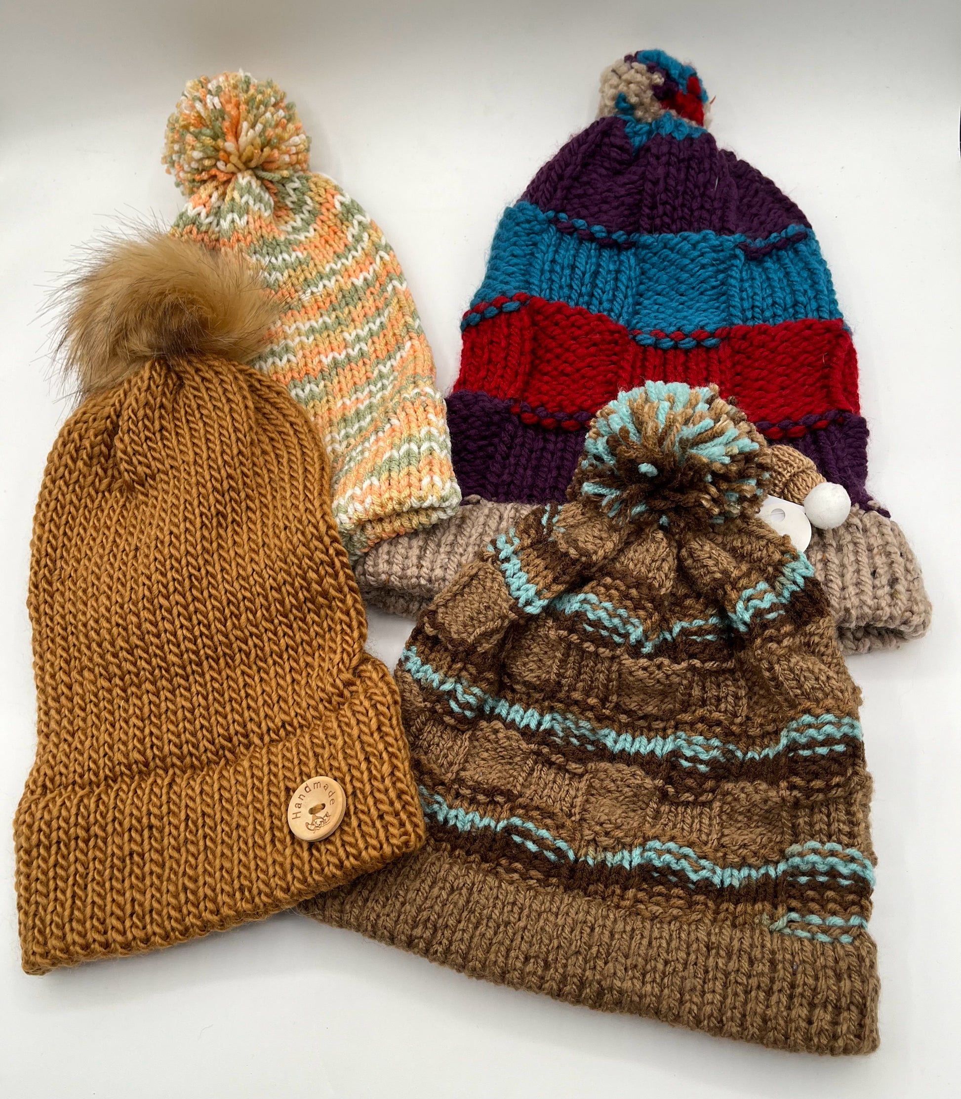 These fun acrylic pompom hats will fit heads with a circumference of 18-20 " around. When ordering please specify which number hat you want using the numbers in the picture!