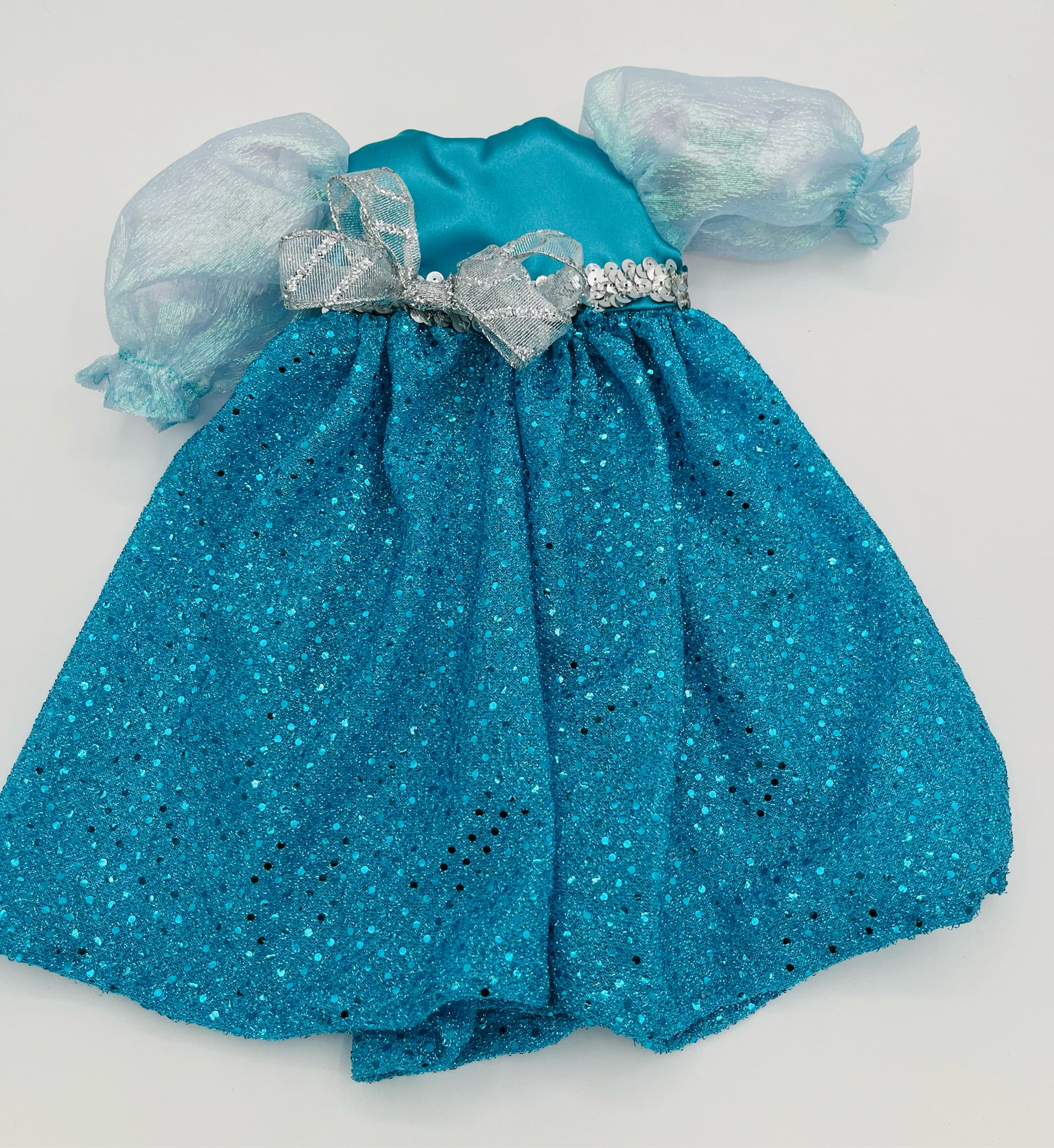 Aqua Sequin Skirt/Sheer Sleeve/Satin Top Dress with Silver Trim for 18" Doll