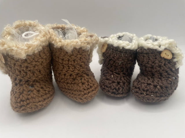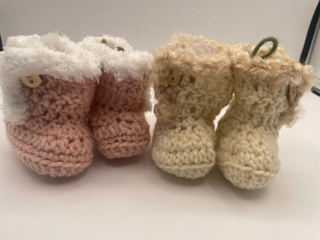These booties are 3.5"-4" long from toe to heel. Please specify color in comment at checkout: Cream, Pink, Medium Brown, and Dark Brown