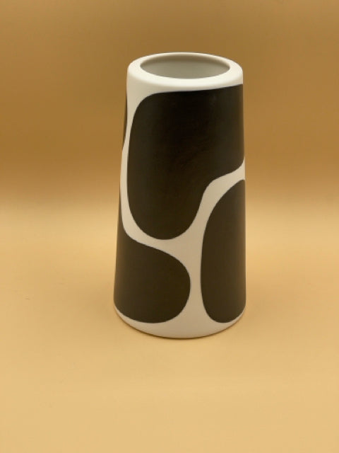 size: 3.5" dia top x 4.5"dia bottom x 8.25"h, white porcelain with clear gloss interior, hand-crafted and hand-painted, hand wash only