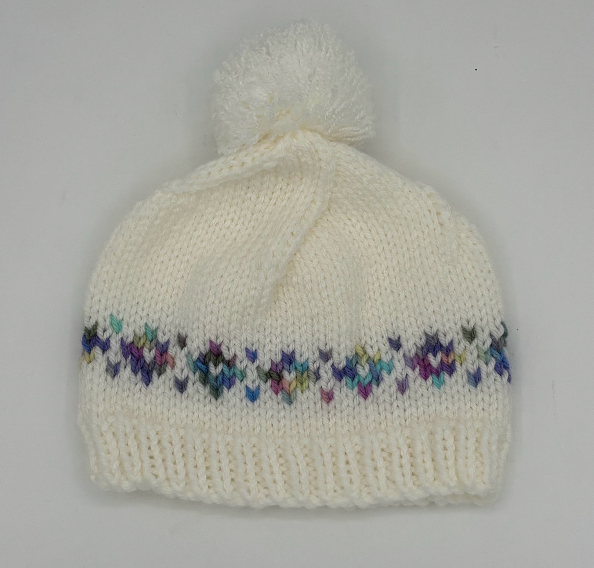 Child Large with Pastel Acrylic Fair Isle Knit Beanie with Pom Pom