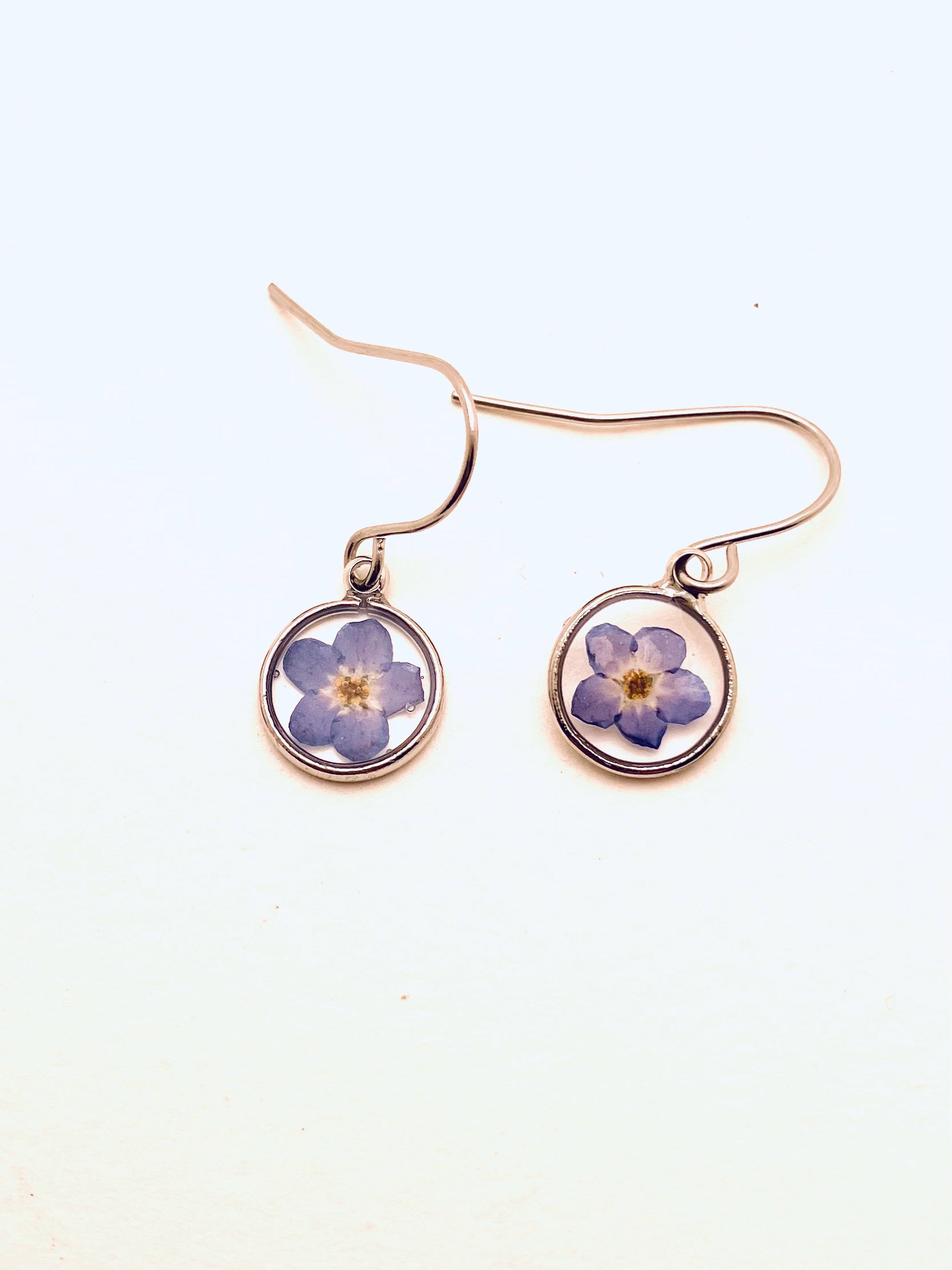 Dried Pressd Flower Earrings, Round, Forget-Me-Nots