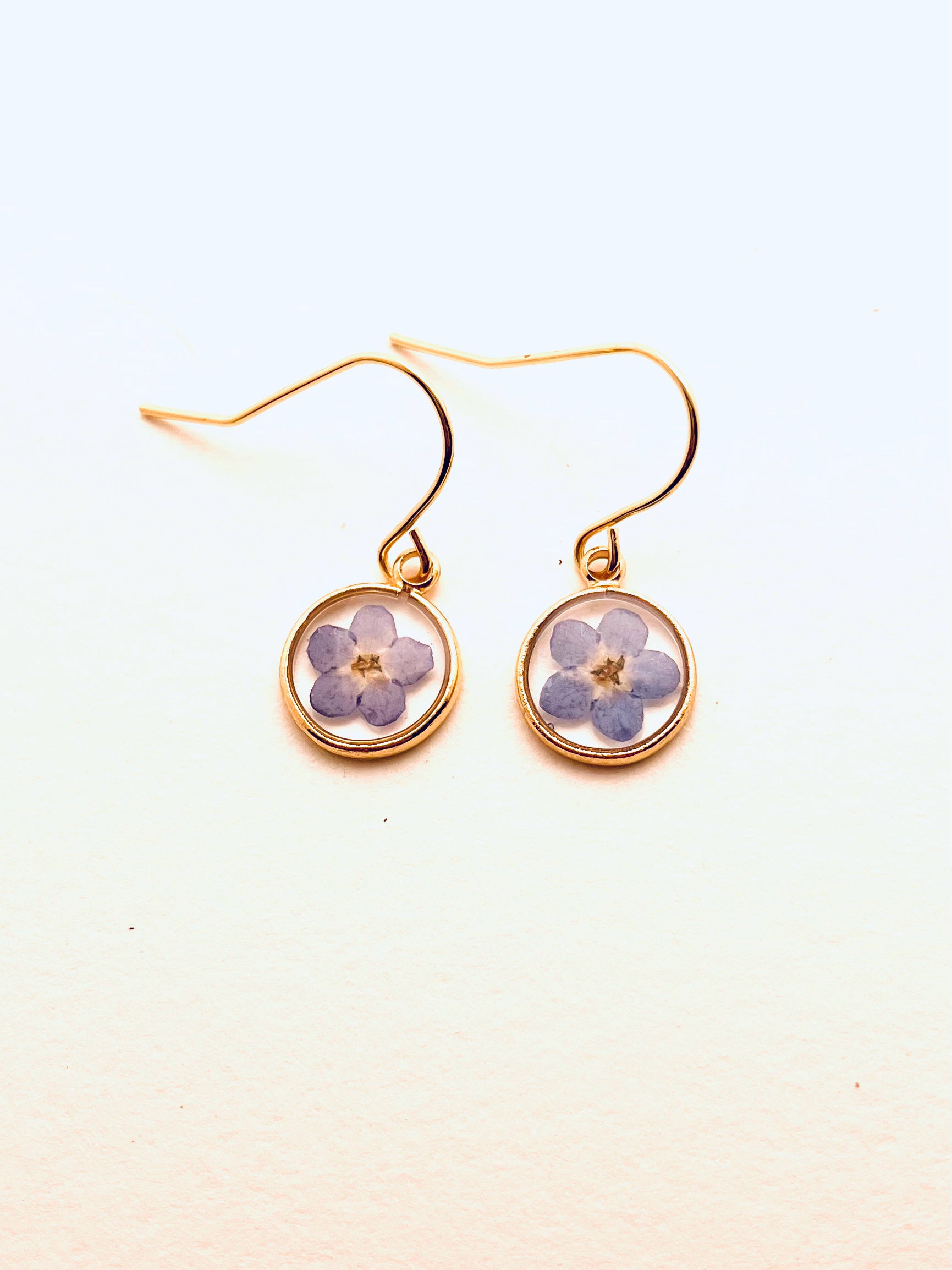 Dried Pressed Flower Earrrings, Round, Forget-Me-Nots