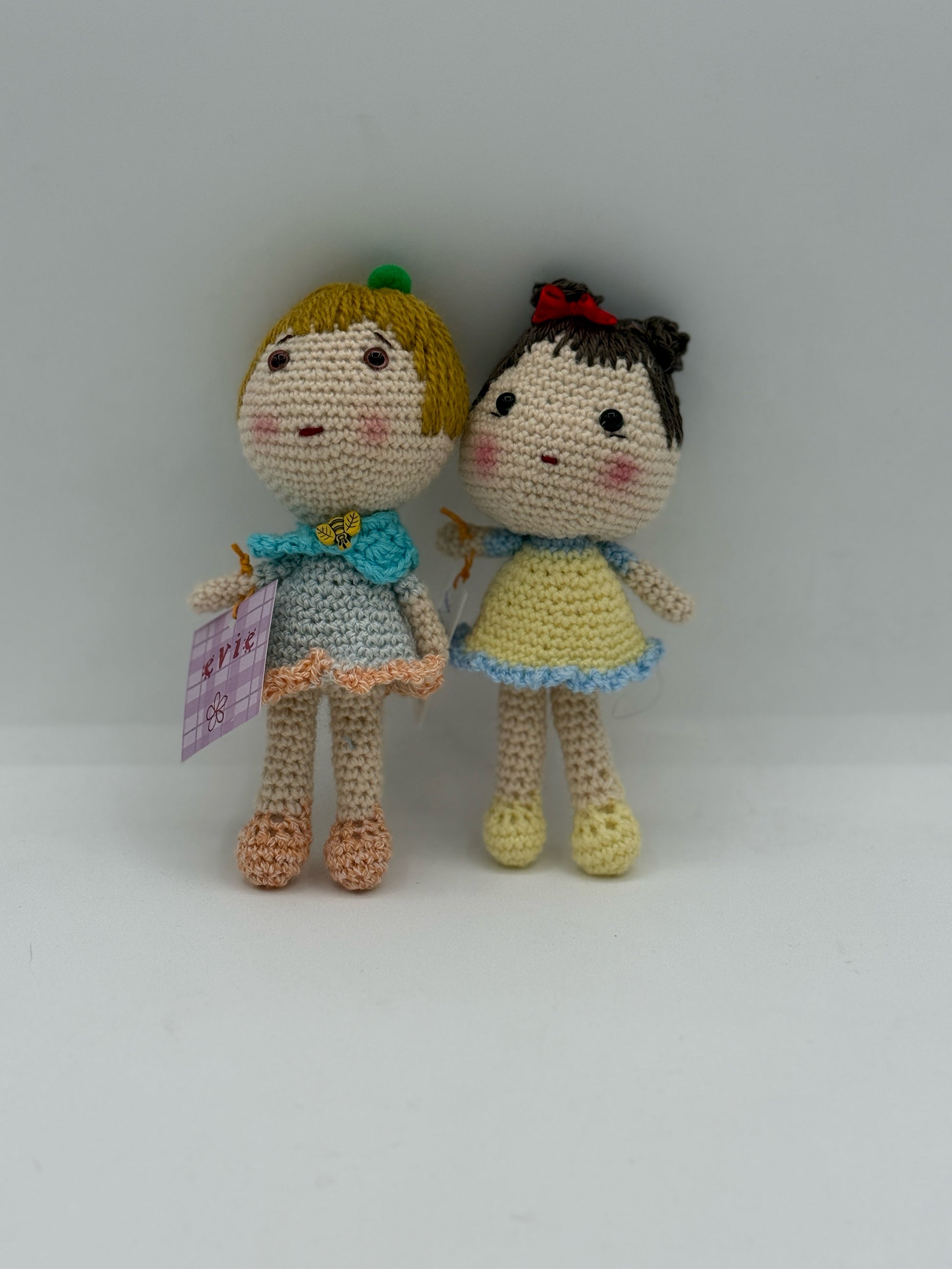 Crocheted, specify brown hair or gold hair, 5 in high