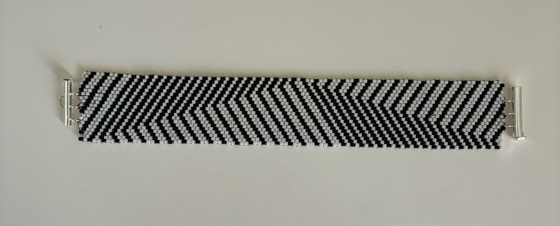 Japanese glass cylindrical beads, sterling silver slider clasp