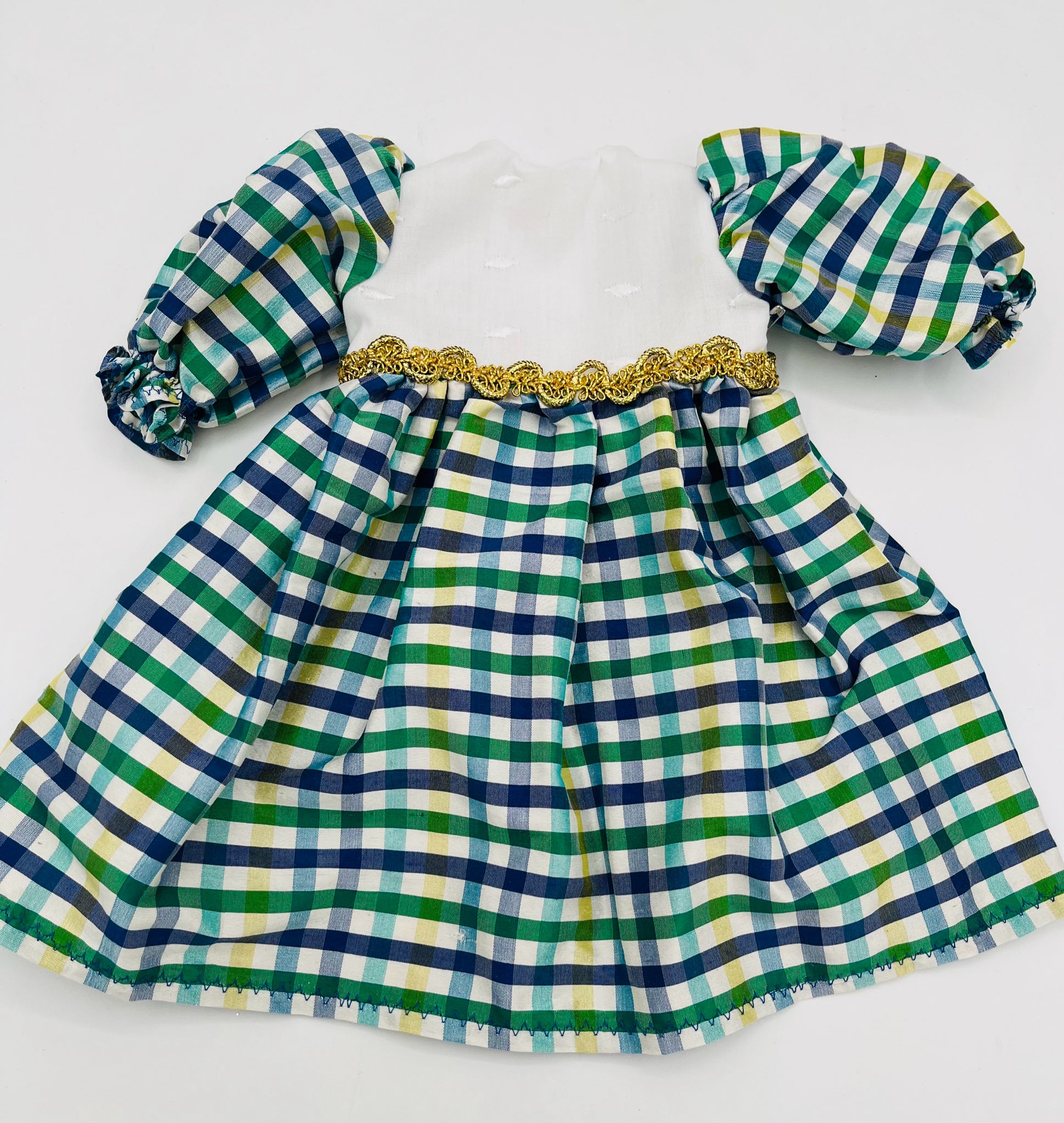 Green/Navy Plaid Taffeta Dress with Gold Trim for 18" Doll