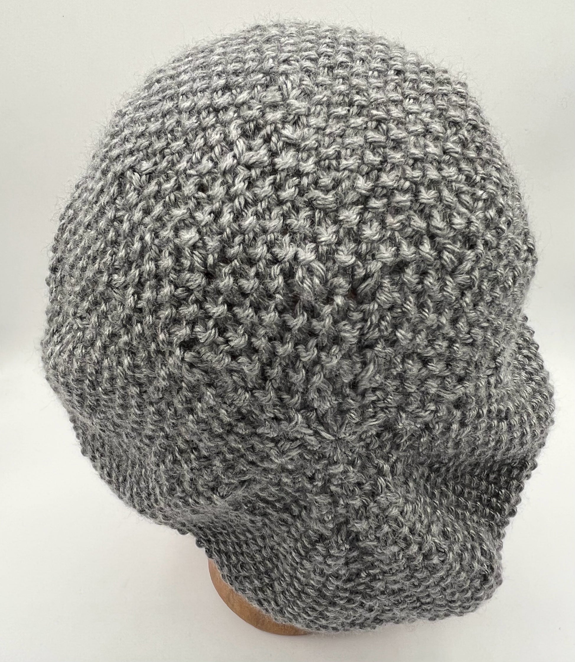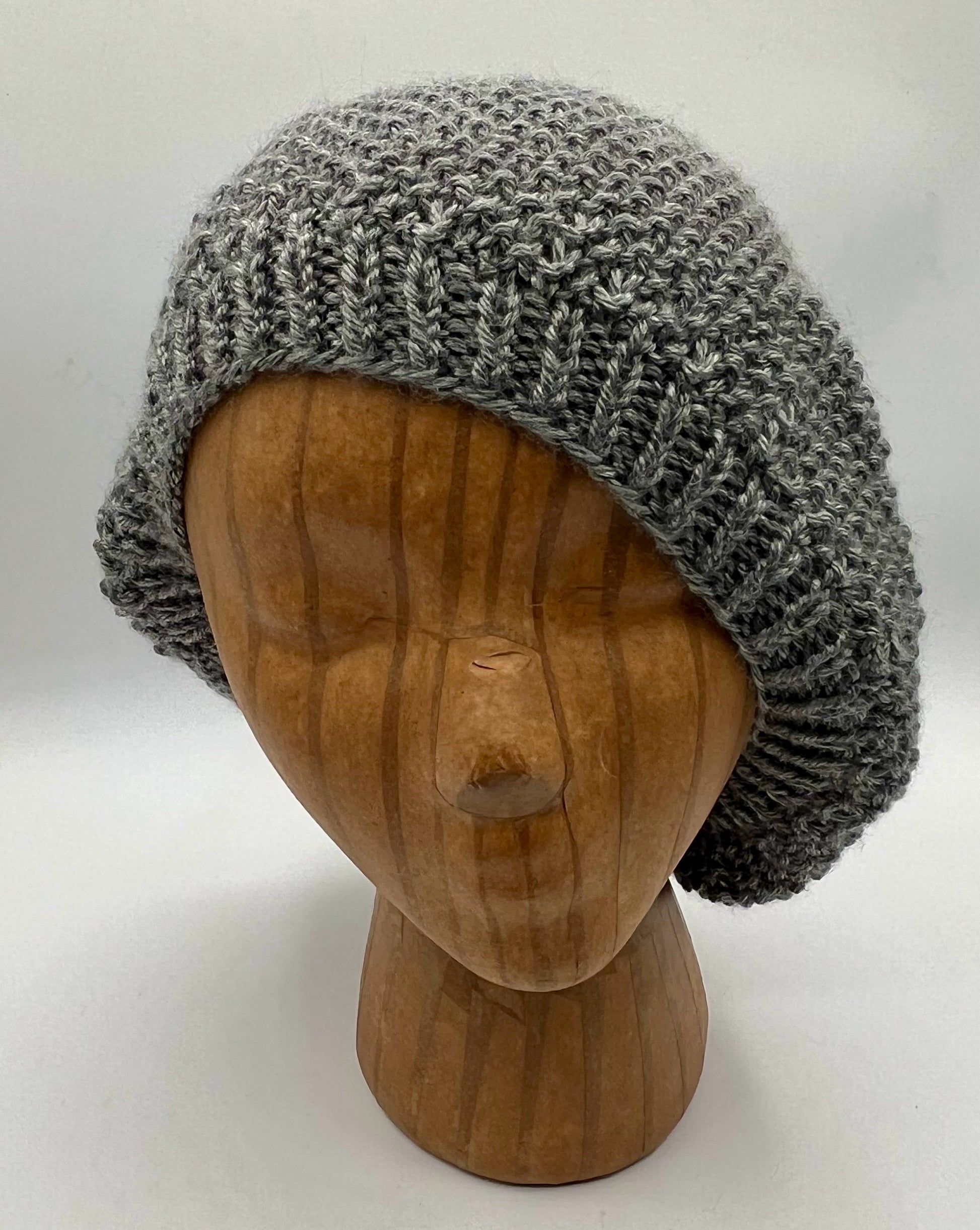 Grey Acrylic Seed Stitch Knit Slouch Hat