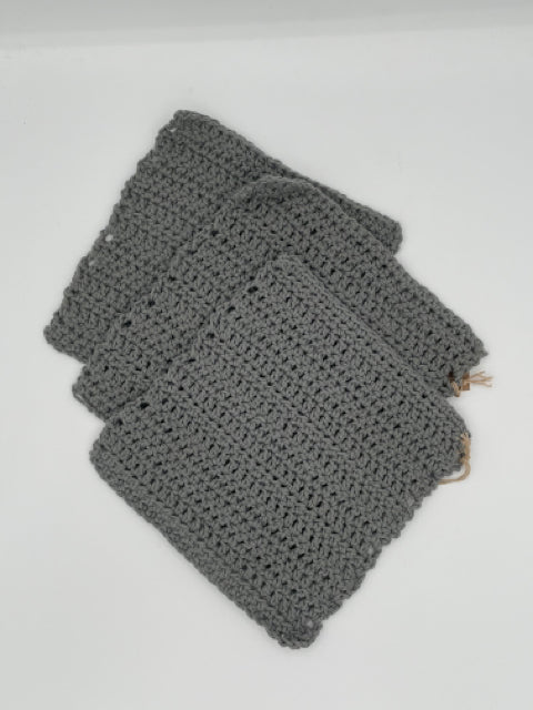 Grey Cotton Crochet Dish Rag