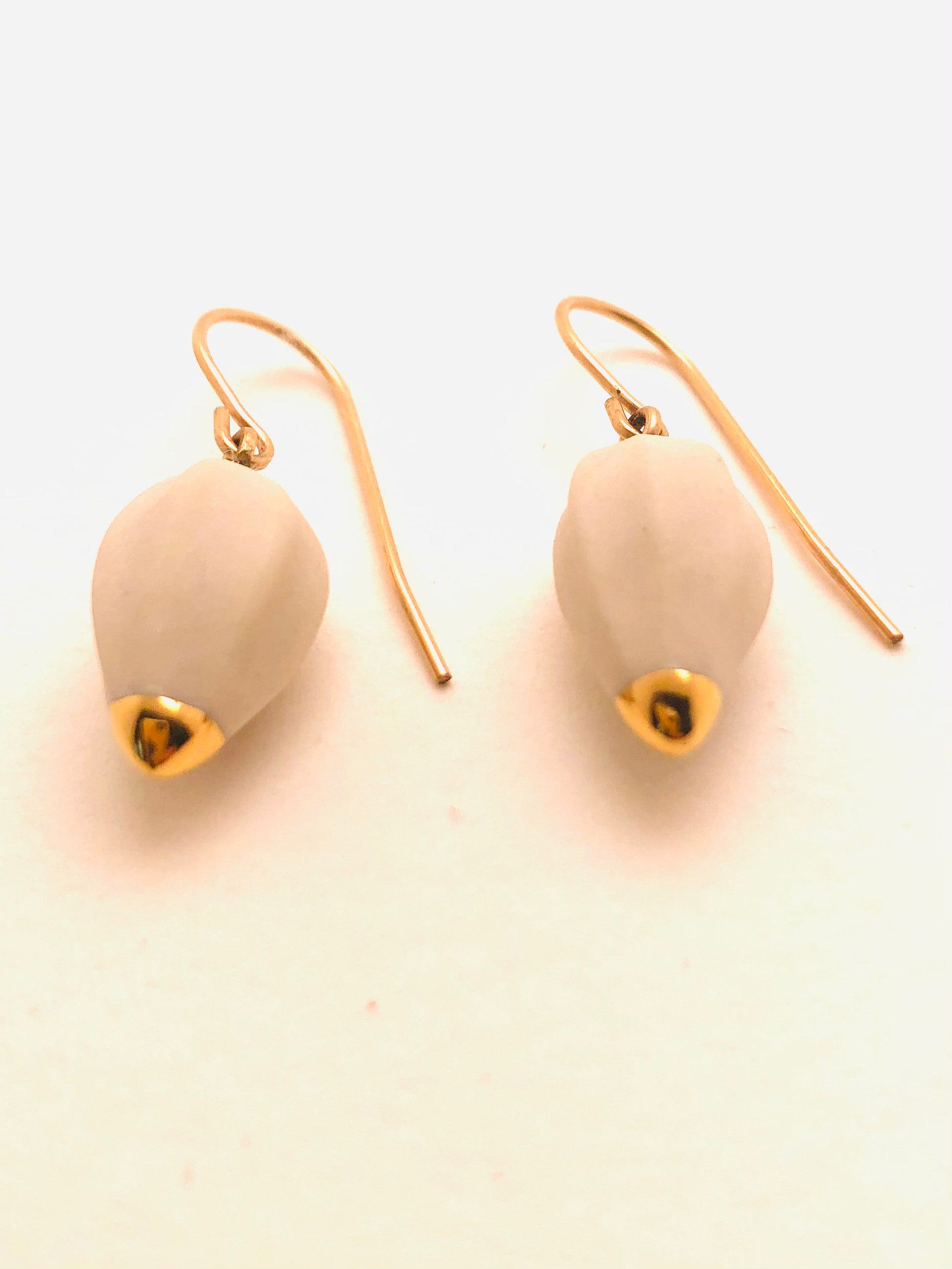 Seed Earrings, Sculpted Porcelain with 22k Gold Tipped Tip