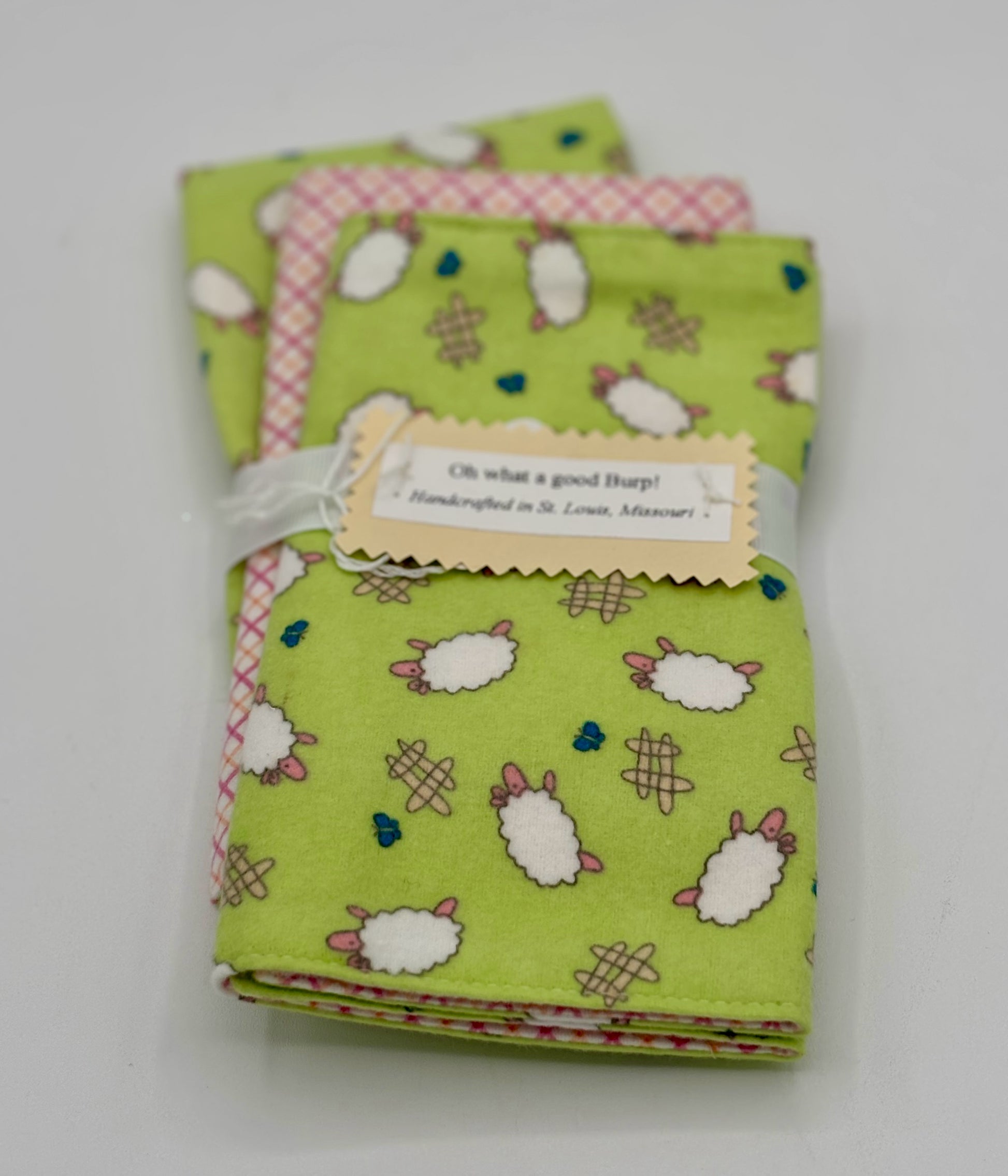 Sheep on Green with Pink Chevron Burp Cloths Set of 3