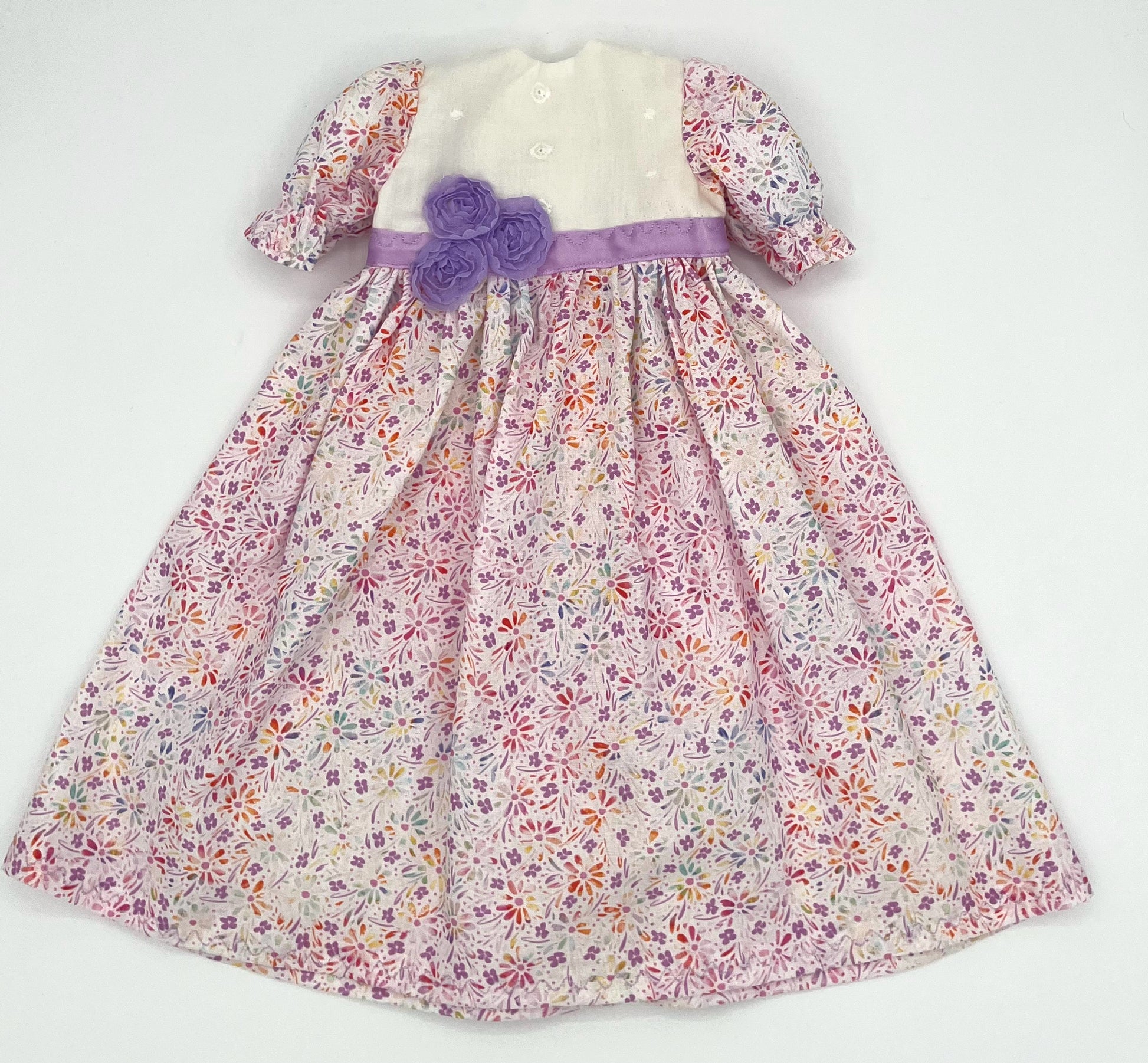 Short Sleeved Pale Pink Floral Long Dress with Purple Trim for 18" Doll