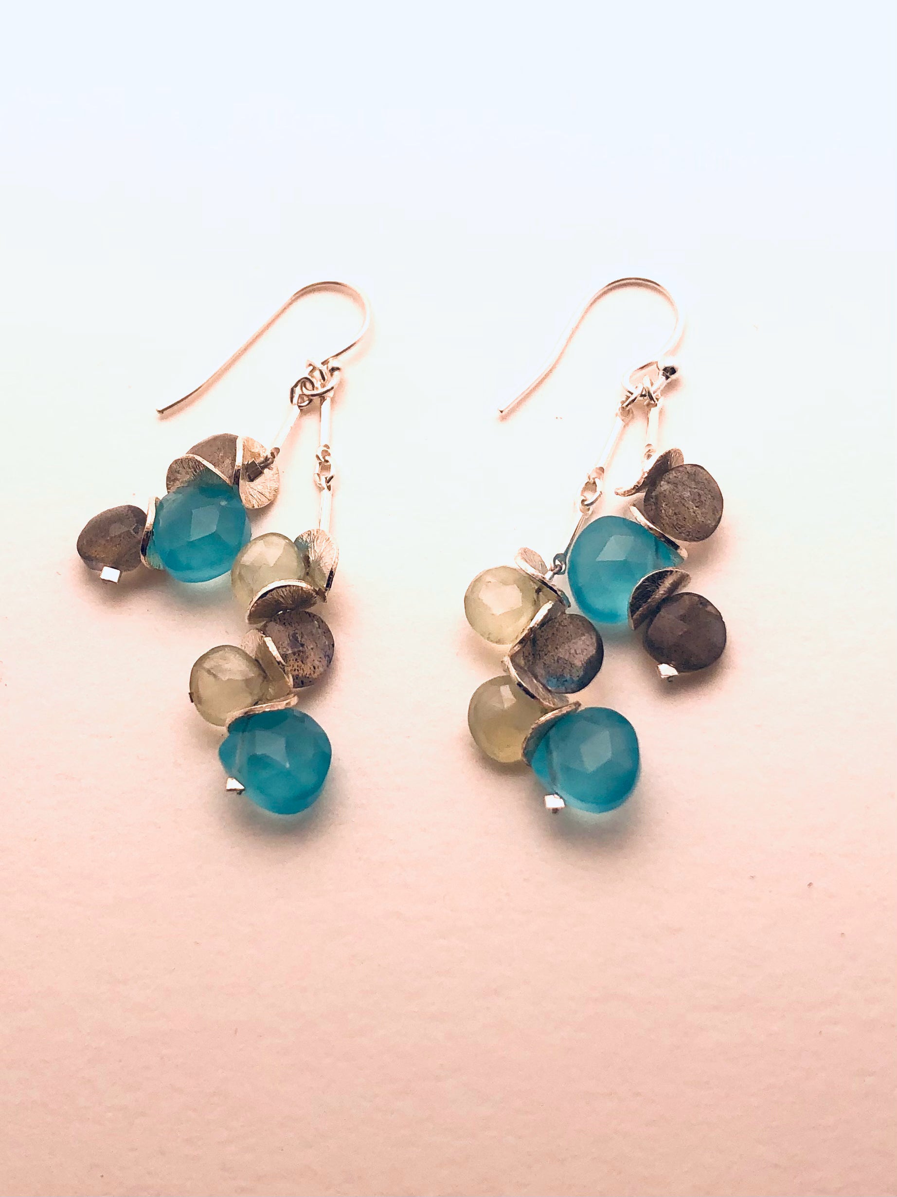 Signature Water Color Earrings, Labradorite, Prehnite, Chalcedony, Sterling