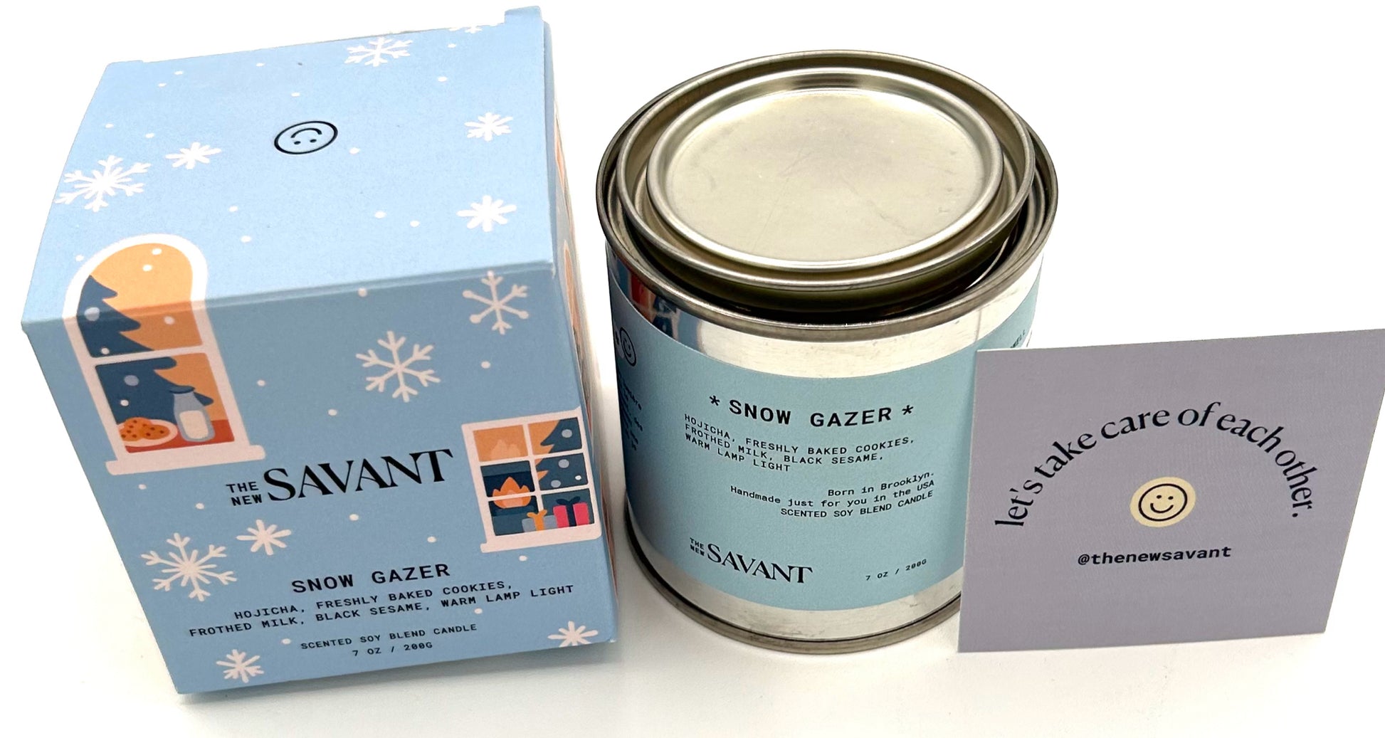 7 oz., up to 50 hrs burn time, Notes of hojicha, freshly baked cookies, frothed milk, black sesame & warm lamp light. Stainless steel container made from 25% post-consumer content, vegan and cruelty-free