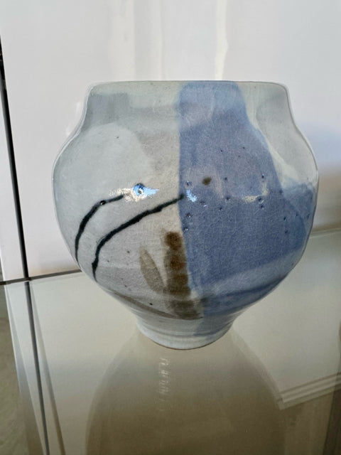 Stoneware, Pink, Yellow, White, Black, and Blue Vase