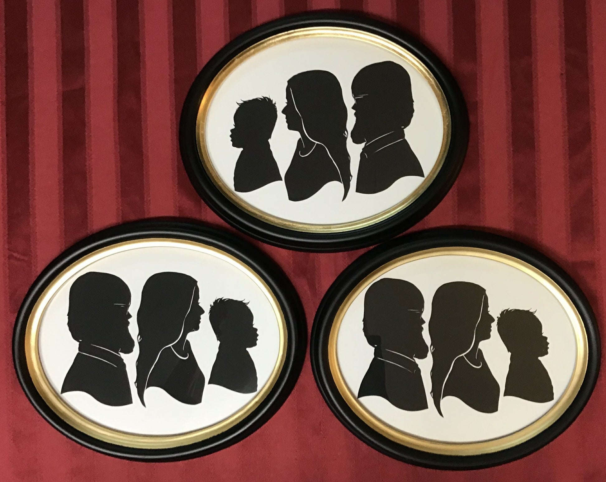 Three Original Silhouettes and Six Copies in Three Large Oval Frames
