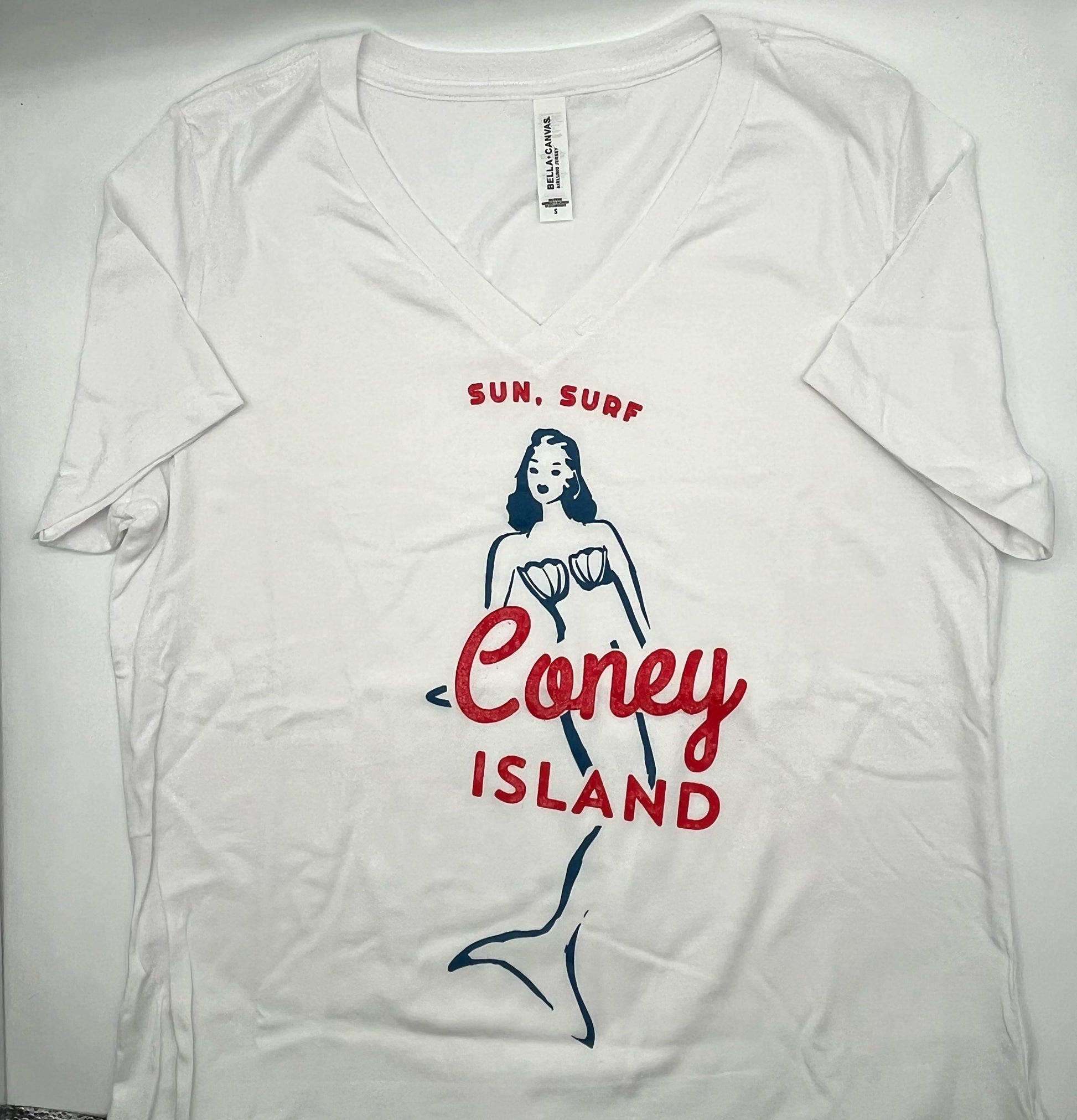 V-neck Coney Island Mermaid T-shirt Adult L White